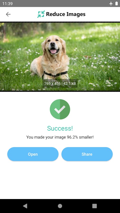 — Вы можете выбрать «Поделиться» на любое изображение на вашем телефоне, чтобы поделиться ими с нашим приложением. Откроется «Уменьшить изображения», и вы сможете изменить его размер и поделиться им с любым приложением или контактом, которым вы хотели поделиться в первую очередь.