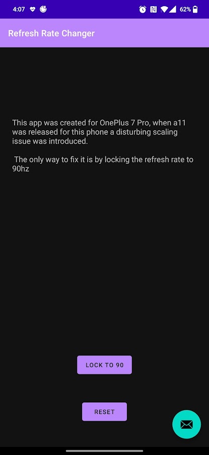 Это приложение было создано для OnePlus 7 Pro, когда для этого телефона был выпущен a11, возникла тревожная проблема масштабирования. Единственный способ исправить это — заблокировать частоту обновления до 90 Гц.