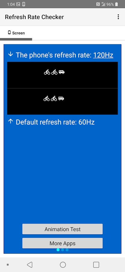 Refresh Rate Checker — бесплатное приложение для определения частоты обновления экрана телефона и выполнения теста движения с несколькими частотами кадров (например, анимация TestUFO).