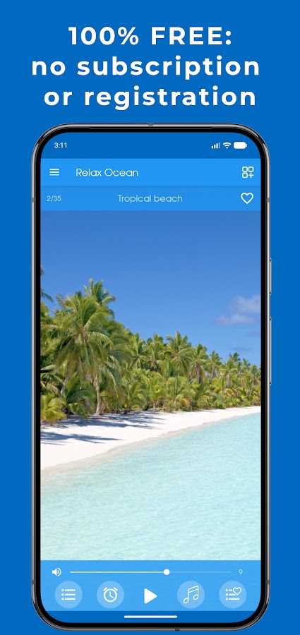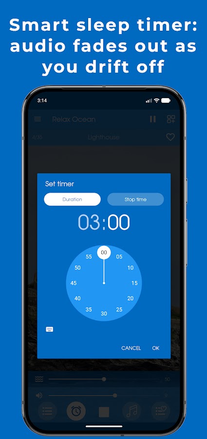 Вы можете установить таймер и перевести приложение в фоновый режим или выключить экран. Когда время истечет, звук мягко затихнет, и приложение самостоятельно закроется. Так что вам не придется беспокоиться о закрытии приложения, если вы заснете.
