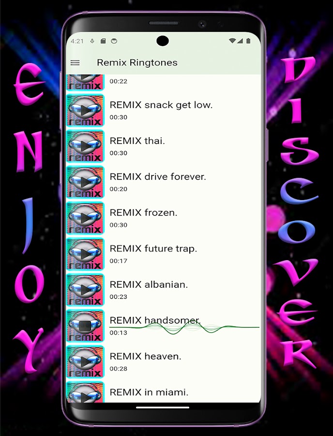 Find Remix Tones — это приложение для электронной музыки, в котором вы найдете приложения для мелодий и техно-звуков, как и для интеллектуальных устройств, где доступны мелодии песен. Хватит искать на интернет-страницах свои любимые мелодии: танцевальная музыка в формате mp3 — отличный вариант для вашего устройства, или вы найдете мелодии DJ-ремиксов. Это приложение для рингтонов для Android, вы можете слушать все модные песни, это мелодии для мобильных телефонов и забавные звуки, которые звучат громко, а также эти очень приятные звуки уведомлений и мелодии ремиксов.