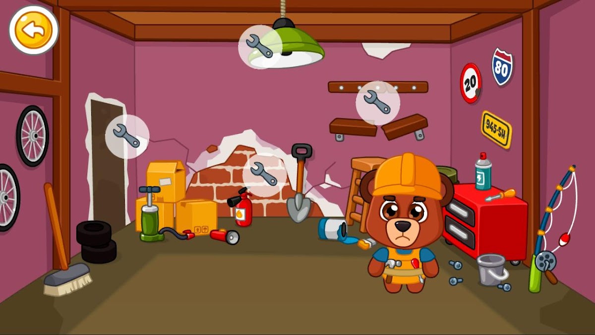 В этой замечательной игре вашим малышам придется побывать в такой замечательной роли, как строитель, которому просто необходимо сделать ремонт дома для себя и своей семьи. В вашем распоряжении огромный, но очень старый многоэтажный дом. Где-то разбилось окно, где-то со стены отпала штукатурка, а где-то перегорела проводка и вы, как самый настоящий домашний мастер, должны будете все это починить, начиная с подвала и заканчивая чердаком, ведь стройка и ремонт — это очень ответственное и интересное занятие. Также вашим малышам нужно будет сделать ремонт во всех комнатах, аккуратно отремонтировать сломавшуюся мебель, декорировать и покрасить стены, и многое другое.