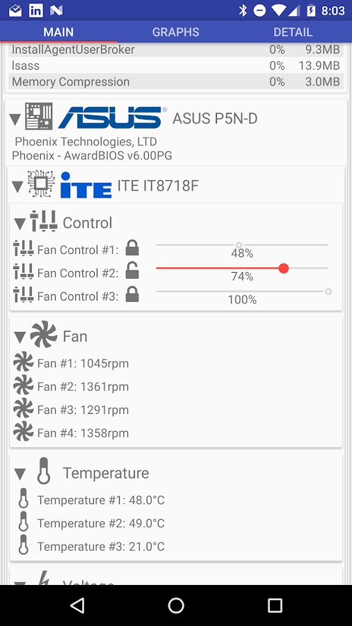 — скорость вращения вентилятора (процессор, графический процессор, материнская плата и т. д.) и управление вентилятором