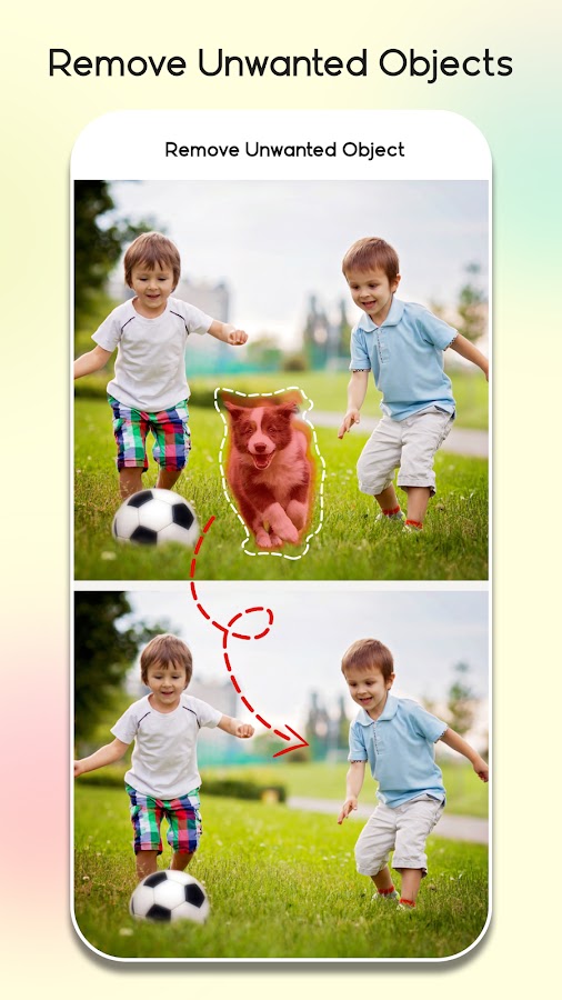 Удаление объектов или удаление фона с фотографии — это интеллектуальное приложение, в котором вы удаляете ненужные объекты с фотографий с помощью инструментов «Кисть» и «Лассо». Вам просто нужно обвести объект инструментом, наиболее подходящим для выделения удаления объекта. Как только область будет выделена красной линией, она автоматически исчезнет.