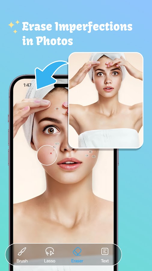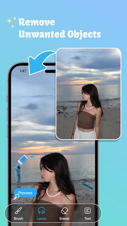 С помощью этого приложения вы можете удалить нежелательный объект фотографии, вы можете удалить ластик, объект ластик, стикер стирания или текст на фотографии. Это все бесплатно!
