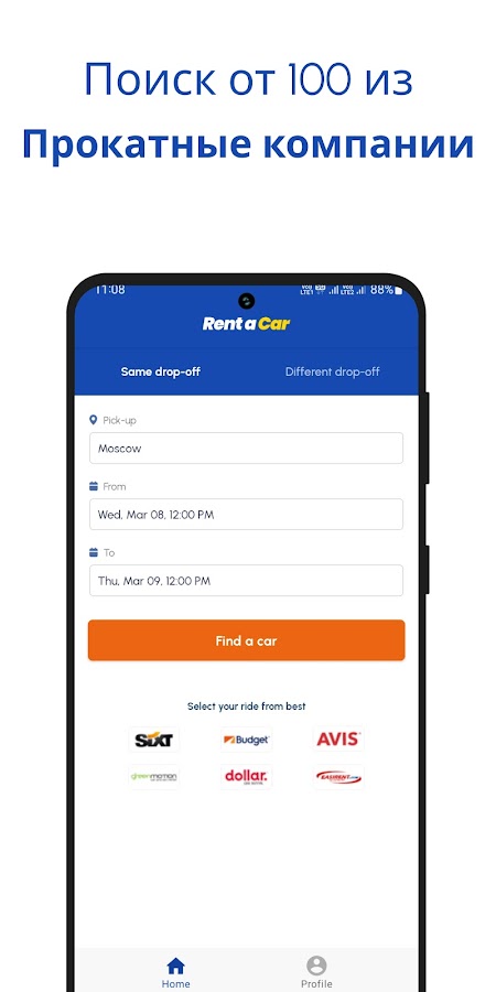 Приложение Rent a car — Cheap Car Rental обеспечивает простой и быстрый способ бронирования автомобилей напрокат. Ищите и сравнивайте предложения по аренде автомобилей от ведущих поставщиков проката автомобилей, таких как Belka car, Sixt, Avis, Hertz, Urentcar, Gold car, Turo, Europcar, Socar, Eco rent a car, Ezhire, Alamo rent a car, Enterprise car rental, Thrifty, Rentalcars com, и т. д.