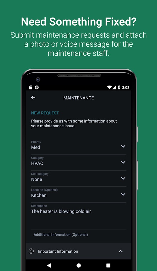 — Отправляйте запросы на техническое обслуживание с фотографиями и голосовыми заметками и отслеживайте прогресс на этом пути.