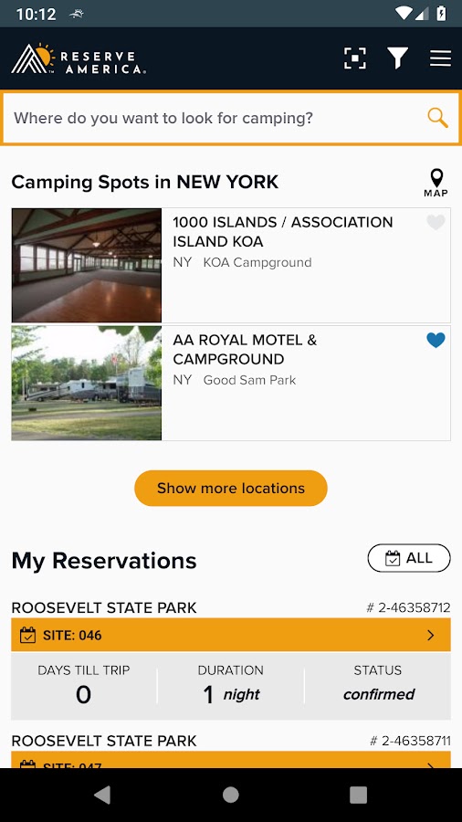 Глядя на палаточный лагерь для будущей поездки кемпинга, или нужно найти место разбивки лагеря сейчас, сегодня? Используйте мобильное приложение для Резерв поиска доступных лагеря и RV сайтов, юртах, каютах и многое другое в государственных, федеральных и частных парков и кемпингов через США Поиск по местоположению, дате или удобства, и отображать результаты поиска на карте … Просмотр сведения о палаточном лагере, отзывы и фотографии … Даже сохранить параметры поиска, чтобы найти свой следующий лагерь так же легко, как открыть приложение!
