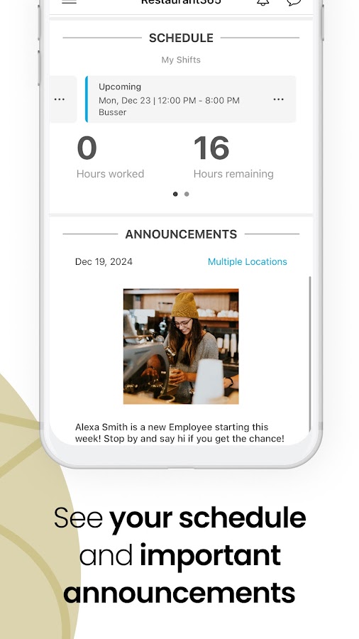 Мобильное приложение Restaurant365 (R365) позволяет сотрудникам ресторана легко видеть свое расписание, запрашивать смену смены, запрашивать свободное время, просматривать свои временные интервалы и безопасно общаться с другими сотрудниками. Менеджеры могут отвечать на все запросы сотрудников по расписанию, подсчитывать запасы и управлять задачами по расчетам с поставщиками (AP). Если ваш ресторан использует платформу Restaurant365, приложение R365 — лучший способ выполнять ваши задачи на мобильном устройстве. Загрузите новое приложение Restaurant365 прямо сейчас!