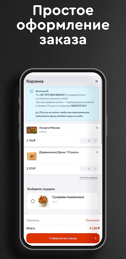 К первому заказу от 999 ₽ дарим ролл «Филадельфия Темпура» (обычная цена 340 ₽) абсолютно бесплатно! Промокод: ПРЕЗЕНТ