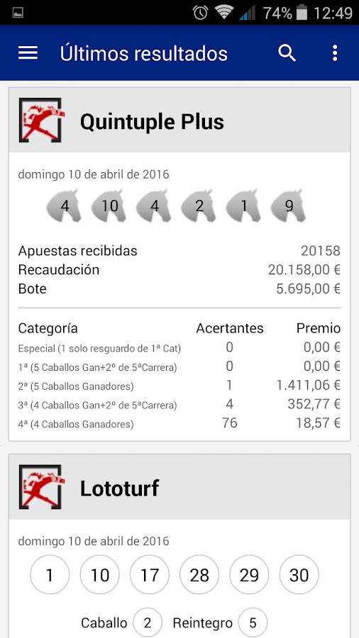С помощью нашего приложения вы можете проверять результаты всех лотерей и ставок в Испании ежедневно и в течение 2 часов после каждого розыгрыша лотереи.