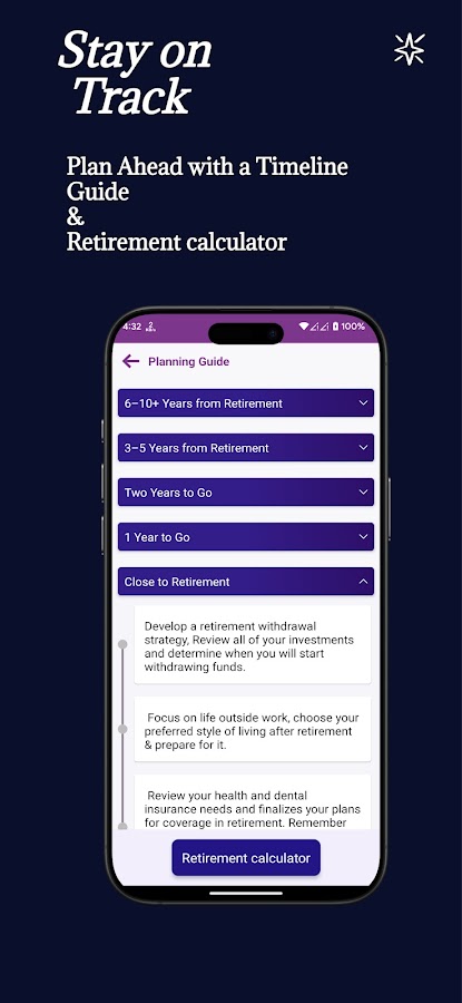 Мы можем установить дату выхода на пенсию, и это поможет подсчитать, сколько дней осталось до выхода на пенсию. Это приложение очень удобное и простое в использовании.