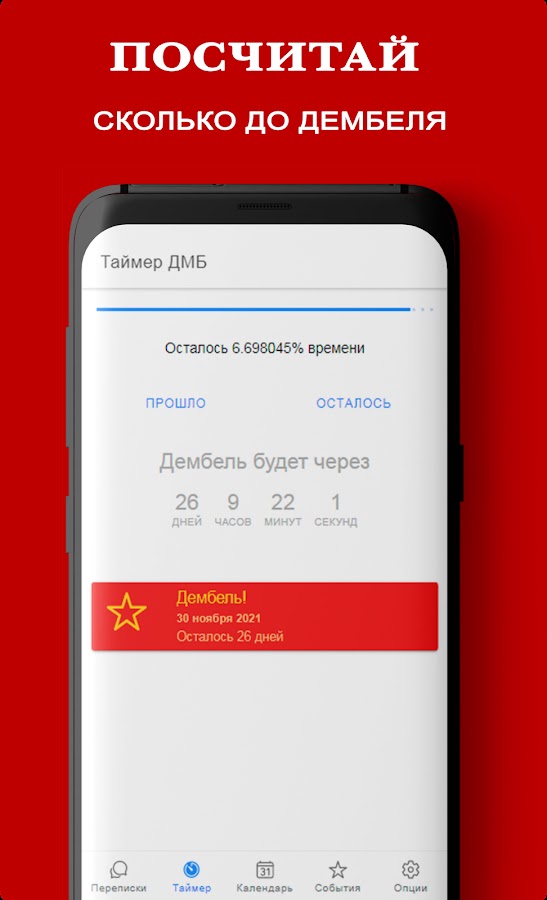 Таймер ДМБ — приложение, которое поможет считать сколько прошло времени на службе в армии и познакомиться в чате.