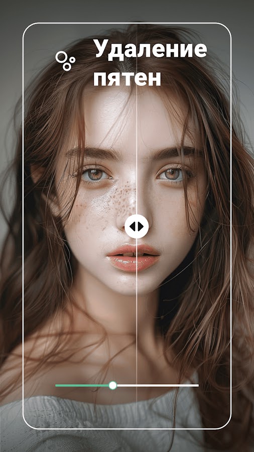 Используйте Retouch, чтобы Удалять людей, прыщи, морщины, тёмные пятна и дефекты. Этот инструмент Ретуши Фото работает как Ластик для лица для гладкой и естественной кожи.