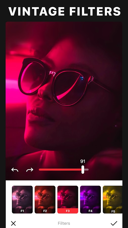 В приложении больше 15 различных ретро фильтров сделанных вручную профессиональным фотографом-блогером. Они универсальны и созданы для различных типов фотографий и цветов, имитируя эффекты 80ых и 90ых