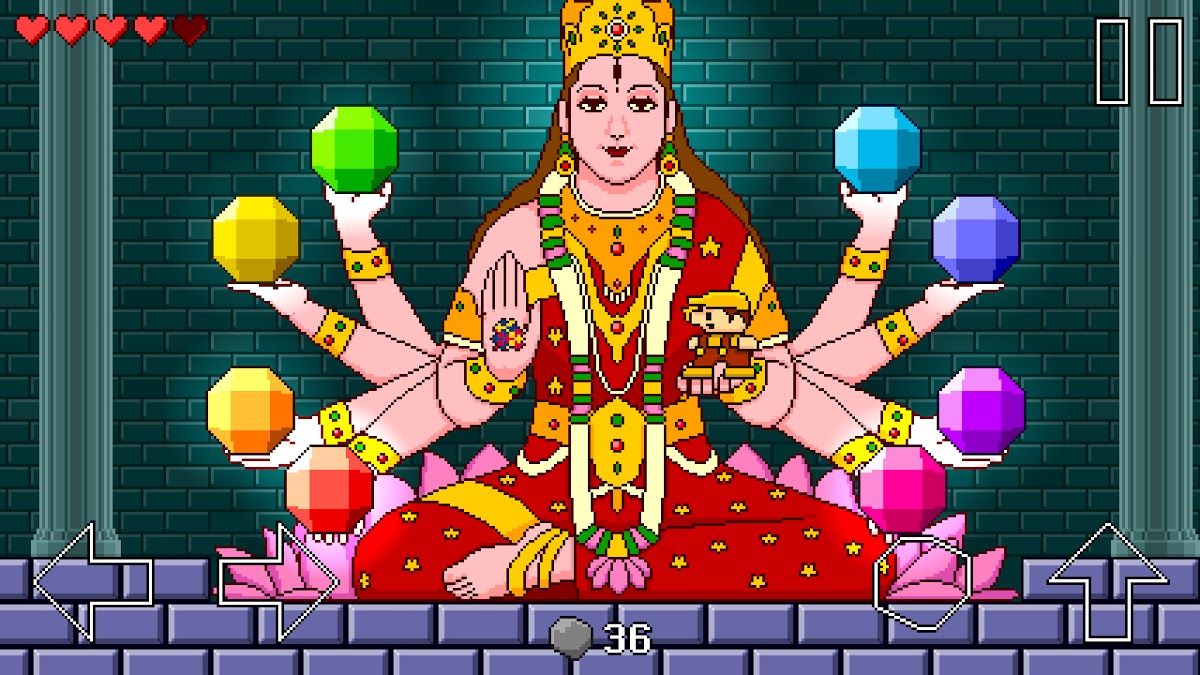 Управление в игре простое – всего 4 кнопки: влево, вправо, вверх(прыжок) и вниз(действие).