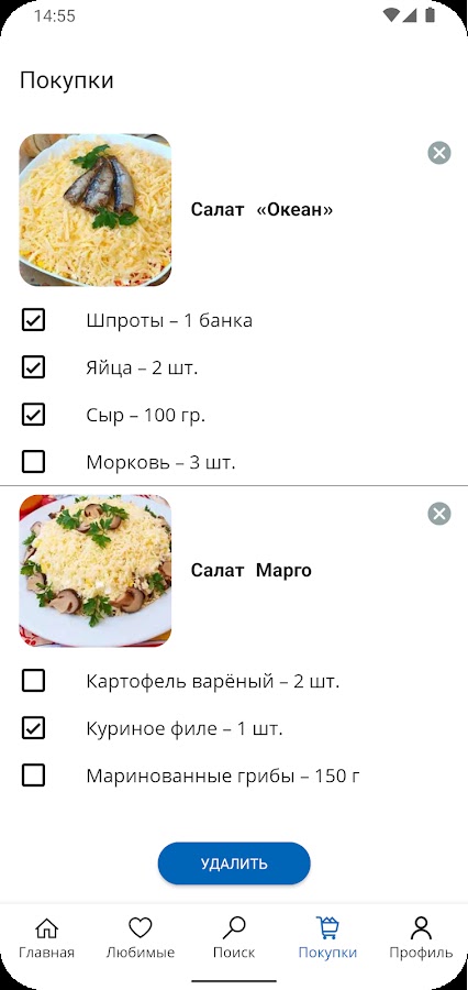 • В приложении есть удобный поиск по названиям и по ингредиентам, который упрощает для Вас выбор рецептов