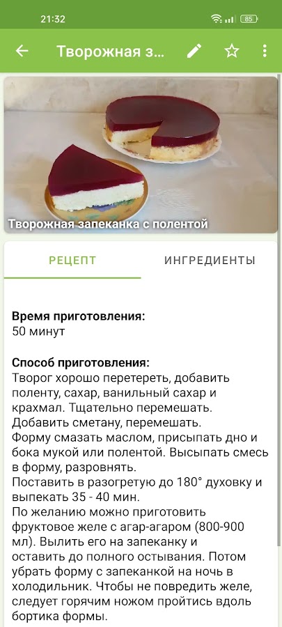 • возможность поделиться рецептом