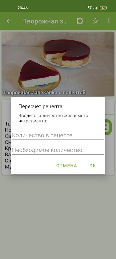 • пересчет ингредиентов в рецепте