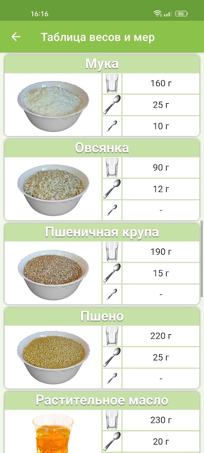 • таблица весов и мер
