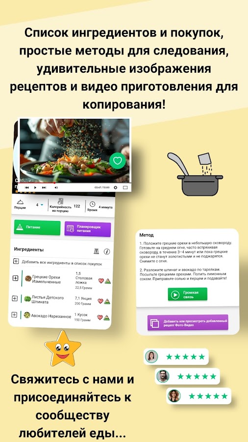 Видео о приготовлении: выходите за рамки текста! Смотрите понятные пошаговые видео о приготовлении рецептов.
