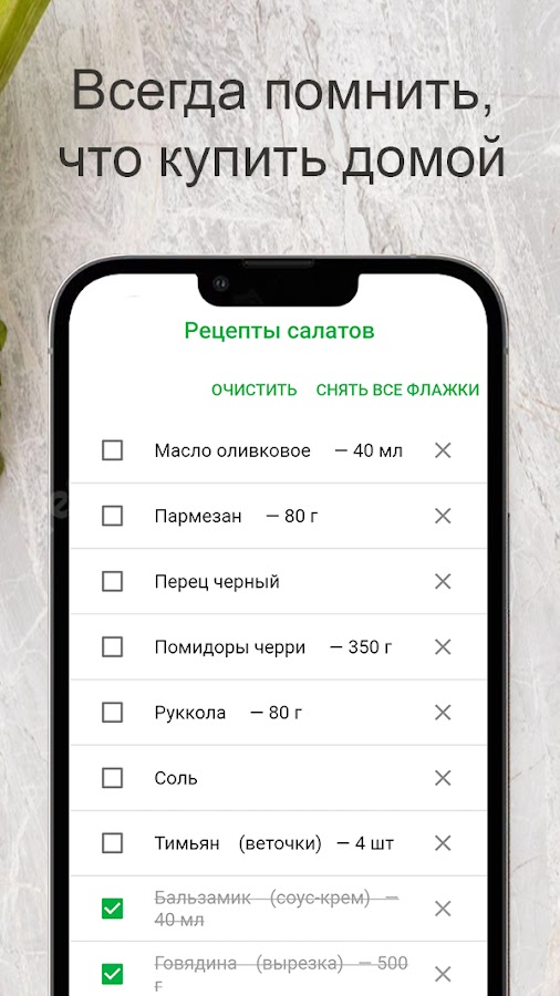 Единый список покупок на все сборники, чтобы не забыть какие овощи и фрукты и не только не забыть купить в магазине или на рынке!