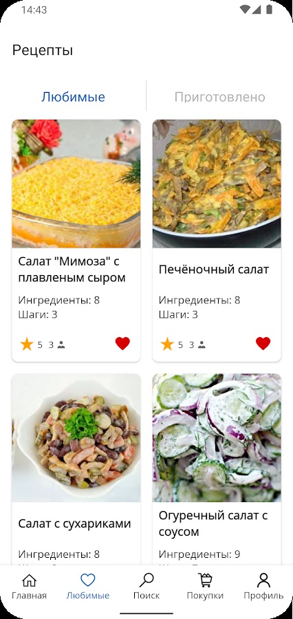 Попробуйте отличное приложение с лучшими рецептами салатов. Кулинарная книга с салатами работает без интернета и любимые блюда на каждый день всегда будут с Вами!