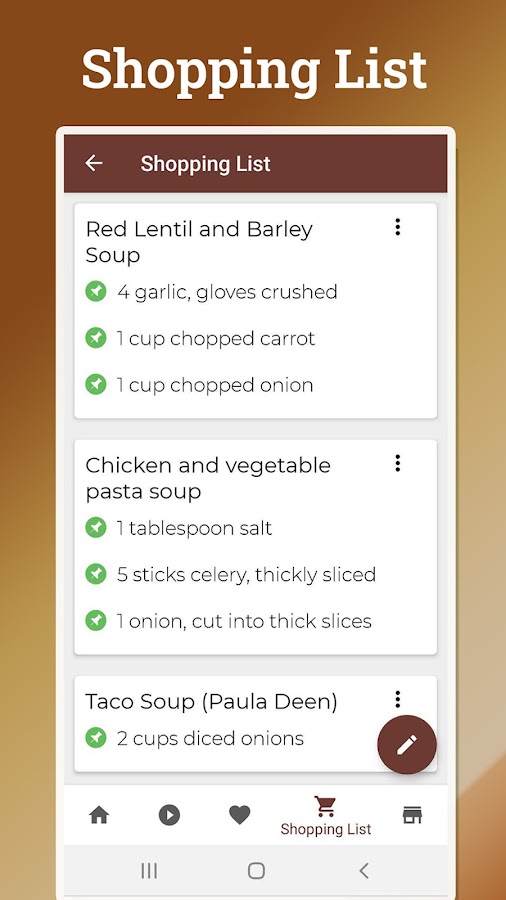 Приложение рецептов супа позволяет вам управлять всеми вашими любимыми рецептами и списком покупок в автономном режиме.