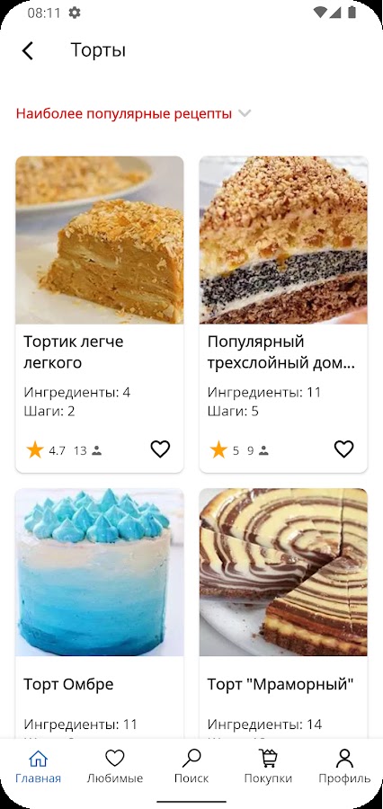 Предлагаем вам простые и вкусные рецепты тортов и десертов для любого случая. В нашем приложении вы найдете рецепты классических тортов, шоколадных тортов, фруктовых и ягодных тортов, пирогов, запеканок, кексов и маффинов, рулетов, печенья и другие нескучные рецепты!