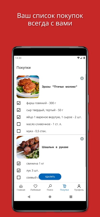 Список покупок 🛒: Легко добавляйте ингредиенты в встроенный список покупок и планируйте походы в магазин без лишних хлопот.