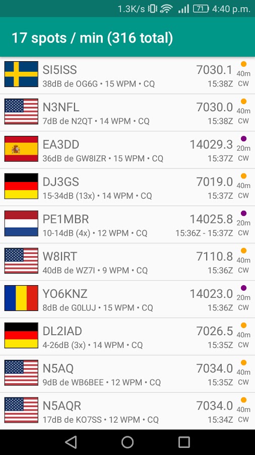 Это приложение делает данные в режиме реального времени RBN, доступные для вашего Android устройства. Можно фильтровать по диапазонов, режимов (CW, PSK, RTTY) и скорости (BPS и ОРЭ).