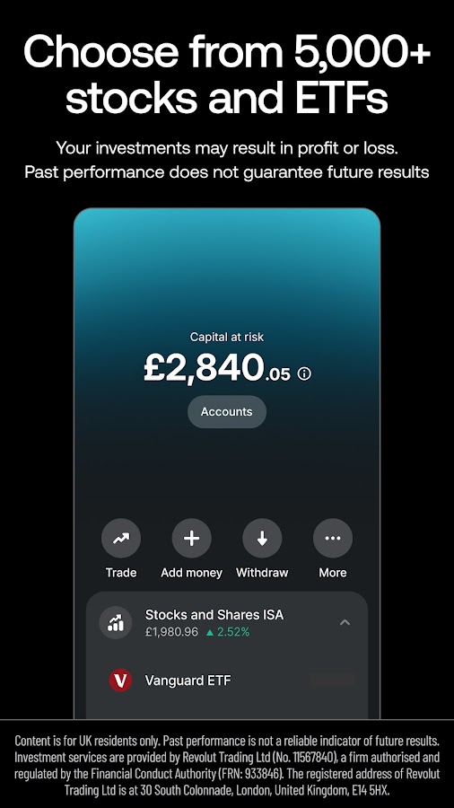Присоединяйтесь к более чем 70 миллионам клиентов по всему миру, которые лучше управляют своими финансами с помощью Revolut. От вашего текущего счета до создания безналогового капитала с помощью инвестиционного счета ISA — управляйте всей своей финансовой жизнью в одном безопасном приложении.
