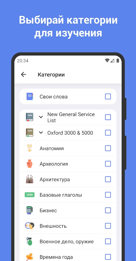 • Имеются списки «New General Service List» (Top 3000), «Oxford 3000 & 5000» — самые важные списки для людей, изучающих английский язык. Закончив учить английские слова из них, Вы гарантированно будете понимать 92% текстов общей тематики на английском языке, а также выведете свой словарный запас на новый уровень.