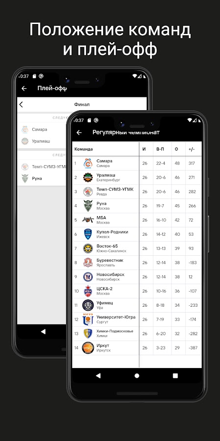 Наше приложение позволяет вам детально следить за каждой лигой, просматривать положение команд как в групповом турнире, так и в играх плей-офф, узнавать лидеров по очкам, подборам, перехватам и т.д. как среди игроков, так и среди команд. Вы можете подписаться как на целую лигу, так и на отдельные команды в ней, и получать оповещения об играх и новостях с помощью PUSH уведомлений.