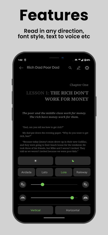 3. Change fonts, text size, night mode and day mode etc in this book.