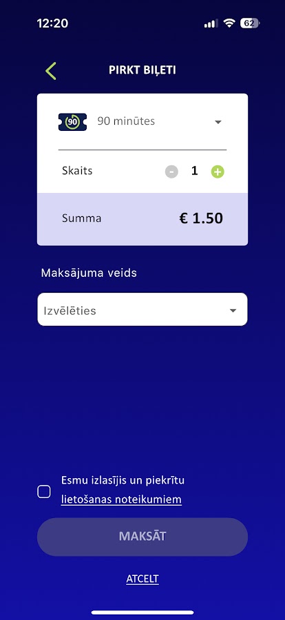 В разделе «Парковка» вы можете оплатить использование парковок «Rīgas satiksme» как для одного, так и для нескольких автомобилей одновременно. Можно сохранить часто используемые номера автомобилей. Оплату можно произвести платёжной картой, Apple Pay и Google Pay. Деньги резервируются на запланированное время парковки, но списываются только за фактическое, так как парковка может быть прекращена досрочно. История транзакций доступна за последние четыре месяца. Чтобы не пропустить окончание времени парковки, пользователь может установить частоту напоминаний для активного парковочного места.
