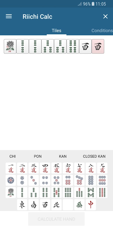 Riichi Calc — это простое в использовании приложение, которое берет любую действительную руку японского маджонга и рассчитывает все возможные выигрышные комбинации. Отличный компаньон для любого японского маджонга! Не стесняйтесь, напишите мне о любых ошибках расчета.