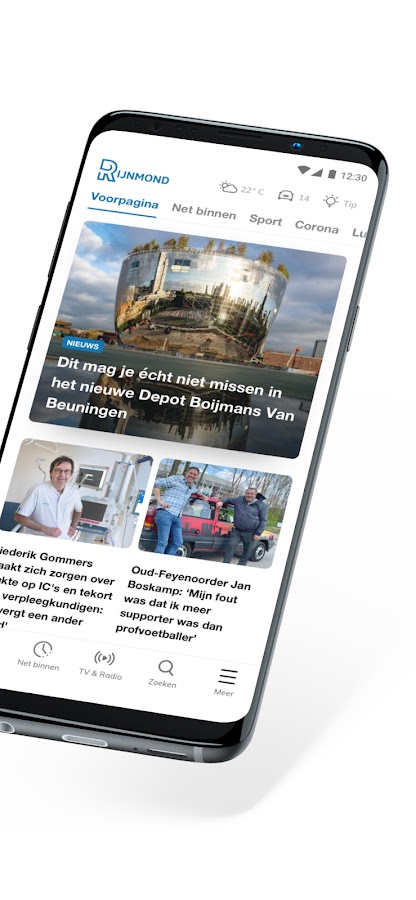 De laatste sportberichten, opsporingsberichten, alles over Radio Rijnmond of het laatste nieuws over de woningmarkt. De belangrijkste onderwerpen hebben in de app een aparte plek gekregen.