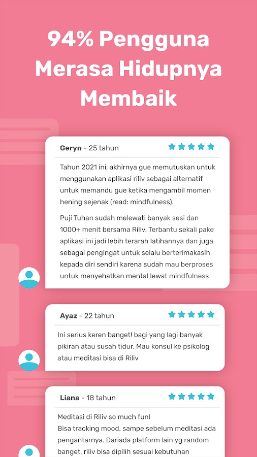 Sambut Riliv sebagai единый сервис aplikasi kesehatan умственного pertama ди Индонезии! Tidak hanya mengatasi masalah pribadi dengan konseling, kini Riliv menyediakan layanan meditasi Hening yang senantiasa membantu menjaga kebahagiaan dan produktivitasmu. Tertarik mempelajari kesehatan mental dengan mudah? Riliv Story menyediakan artikel terkini ян diupdate setiap harinya. Sehat Mental Jadi lebih муда Берсама Riliv.