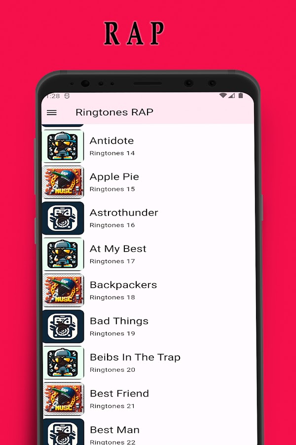 Получите доступ ко всем новым рингтонам для мобильного онлайн. Составьте список своих любимых жанров. Слушайте все последние мелодии песен и мелодии уведомлений для вашего телефона. Эти мелодии рэп-музыки также включены в ваш хороший и сильный ремикс-рэп, среди прочего. И самое лучшее, что у вас могут быть тона рэп-музыки. Этому приложению требуется подключение к Интернету без Wi-Fi, оно не работает и имеет разнообразную базовую музыку, включая лучшие короткие мелодии на английском языке нового рэпа, и делитесь этими старыми мелодиями рэпа для мобильных телефонов со своими друзьями и наслаждайтесь звуками для телефона и сообщений. .