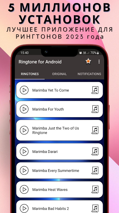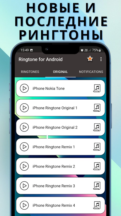 Вы можете найти много оригинальных рингтонов для в этом приложении. Но если вы ищете что-то другое, не беспокойтесь, есть также ремикс-версия рингтонов.