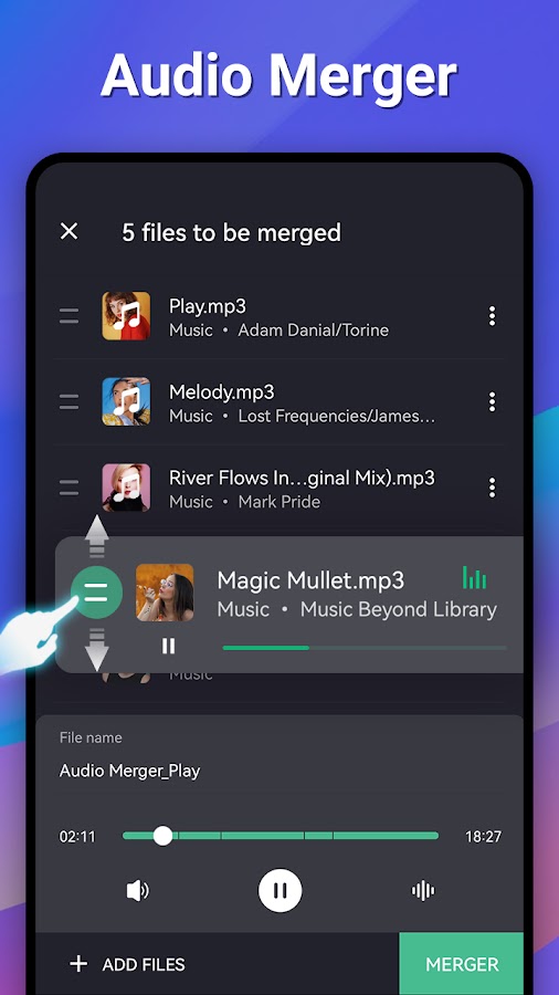— Объединение аудио: легко объединяйте любое количество аудиофайлов в одну песню. Вы можете выбрать музыку, которую хотите объединить, вы можете отредактировать музыку, которую хотите объединить, с помощью нескольких функций. Удобный аудиомикшер для меломана.