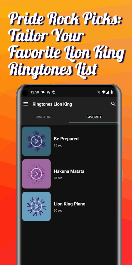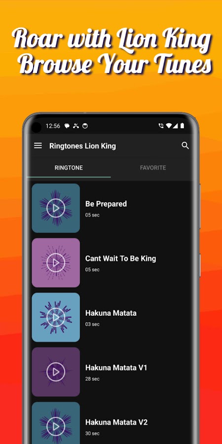 персонализируйте свой телефон с помощью песни и звуков тем Lion King, которые вы можете установить в качестве мелодии звонка по умолчанию, уведомления, сигнала будильника и мелодии контакта.