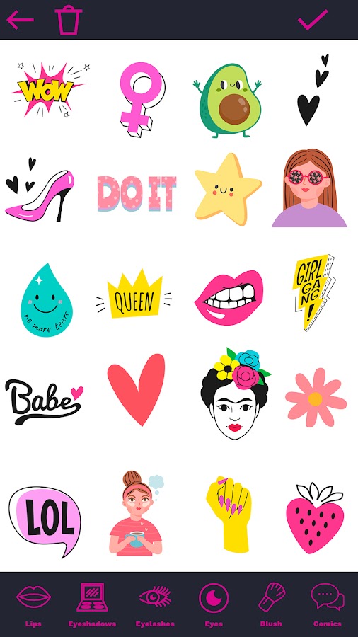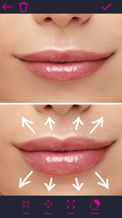 ☀Улучшение губ: сделайте губы пухлыми и улучшите улыбку с помощью фоторедактора лица. Выбирайте размер, форму и полноту губ с помощью наклеек. Попрощайтесь с тонкими губами и здравствуйте с более полной и четкой улыбкой с помощью редактора «Губы и нос»!