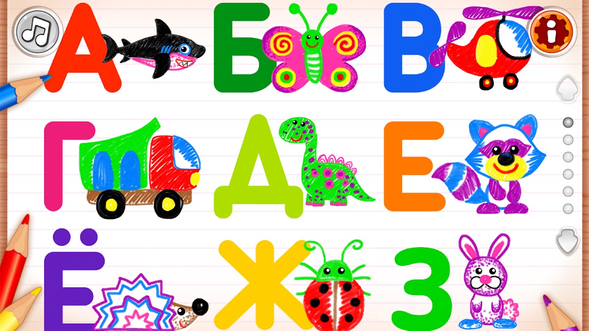 Интересные обучающие игры для детей и веселые игры рисовалки! Наша рисовалка для детей – это полезные развивалки, в которых учим алфавит русский и рисуем букварь вместе с симпатичными персонажами!🤗
