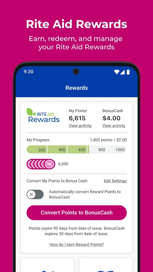 ● Конвертируйте свои баллы Rite Aid Rewards в BonusCash.