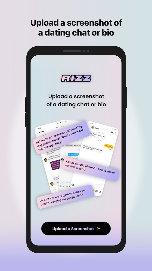 С помощью RIZZ вы можете загружать скриншоты своих разговоров с вашими партнерами и даже биографию ваших партнеров и получать мгновенные и остроумные ответы, адаптированные к вашей уникальной ситуации. Наше приложение создано, чтобы помочь вам поддерживать разговор, независимо от того, пытаетесь ли вы произвести хорошее первое впечатление, произвести впечатление на партнера или просто хотите оживить общение.