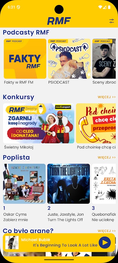 — Плейлист RMF FM — посмотрите, что мы играли в эфире, и послушайте отрывок песни, которая вам понравилась.