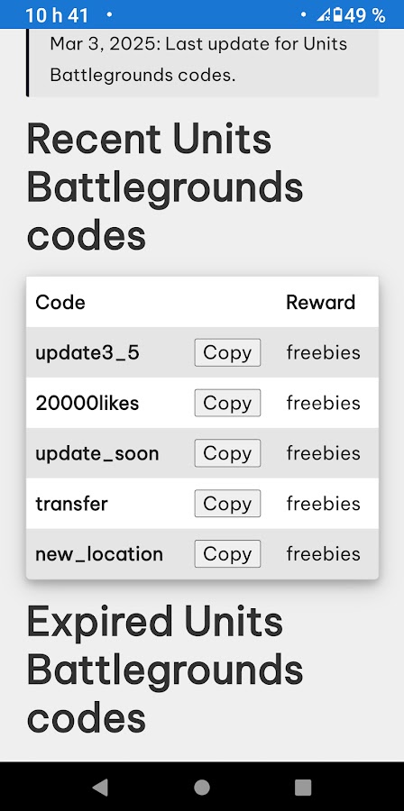 Наше приложение имеет оптимизированный дизайн с ярлыками, которые позволяют вам быстро найти нужную страницу с кодами Roblox. Легко перемещайтесь от А до Я — независимо от того, ищете ли вы коды, основанные на вашей любимой игре или определенных категориях предметов.