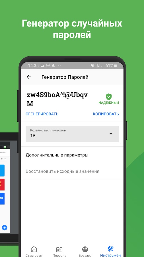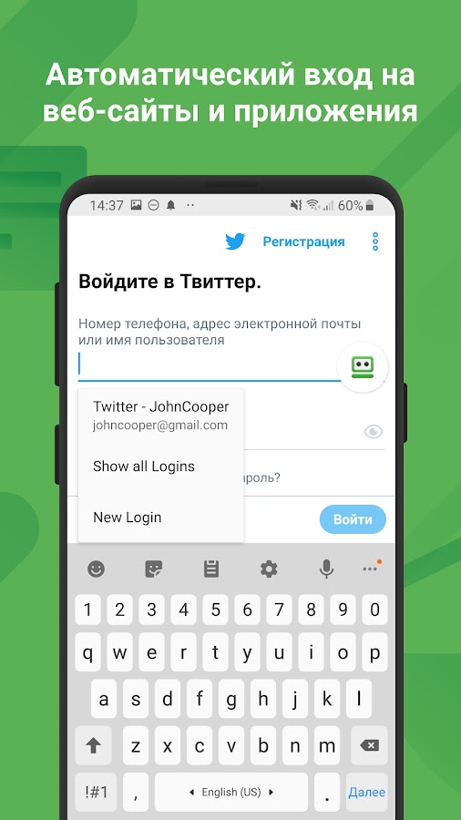 • Обеспечивает автоматическое заполнение паролей для приложений, через Chrome или через другие браузеры.